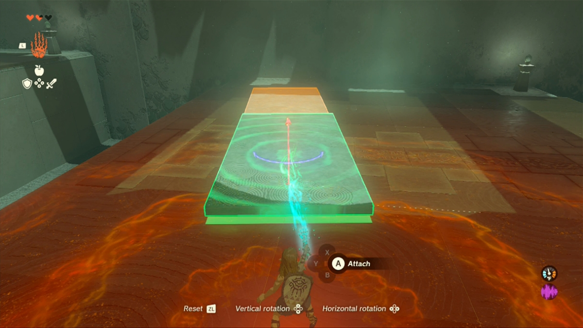 ความสามารถอุลตร้าแฮนด์สร้างพันธะที่ทรงพลังระหว่างวัตถุสองชิ้นหรือมากกว่า คุณสามารถเข้าร่วมกับพวกเขาด้วยวิธีใดก็ได้ที่คุณชอบ และพวกเขาจะเกาะติดอย่างจริงจัง แทนที่จะแยกจากกัน เพื่อไปยังจุดสิ้นสุดของศาลเจ้า คุณต้องใช้ความสามารถในการติดส่วนประกอบต่างๆ เข้าด้วยกัน ที่ช่องว่างกว้างอันแรกที่มีบันได ฉันพบว่าการติดแผ่นโลหะสองแผ่นจากด้านหนึ่งถึงปลายนั้นง่ายที่สุด คุณสามารถสร้างสรรค์ได้มากขึ้น แต่ก็ไม่จำเป็น หลังจากนั้นคุณต้องประกอบไม้และตะขอโลหะเพื่อสร้างแท่น ตั้งค่าให้ขอเกี่ยวพาดผ่านสายไฟที่พาดผ่านช่องว่างกว้างๆ เมื่อคุณเคลื่อนลิฟต์แล้ว ให้กระโดดขึ้นไปอย่างรวดเร็วแล้วขี่ไปยังอีกฝั่งที่ไกลออกไป น่าเสียดายที่คุณไม่สามารถเคลื่อนย้ายแท่นขณะที่ยืนอยู่บนแท่นได้