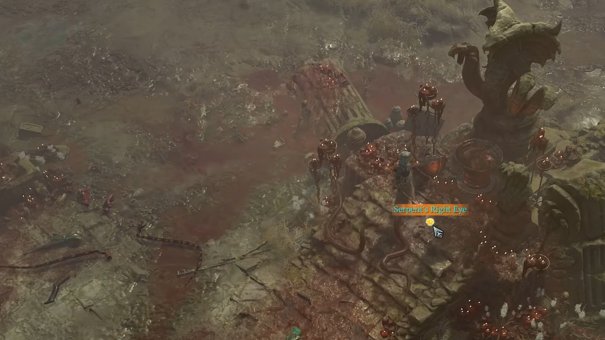 หากต้องการค้นหาดวงตาที่ถูกต้องใน Diablo 4 ให้มุ่งหน้าไปทางตะวันออกของวิหารไปยังบริเวณ Detroyed Serpent Shrine
