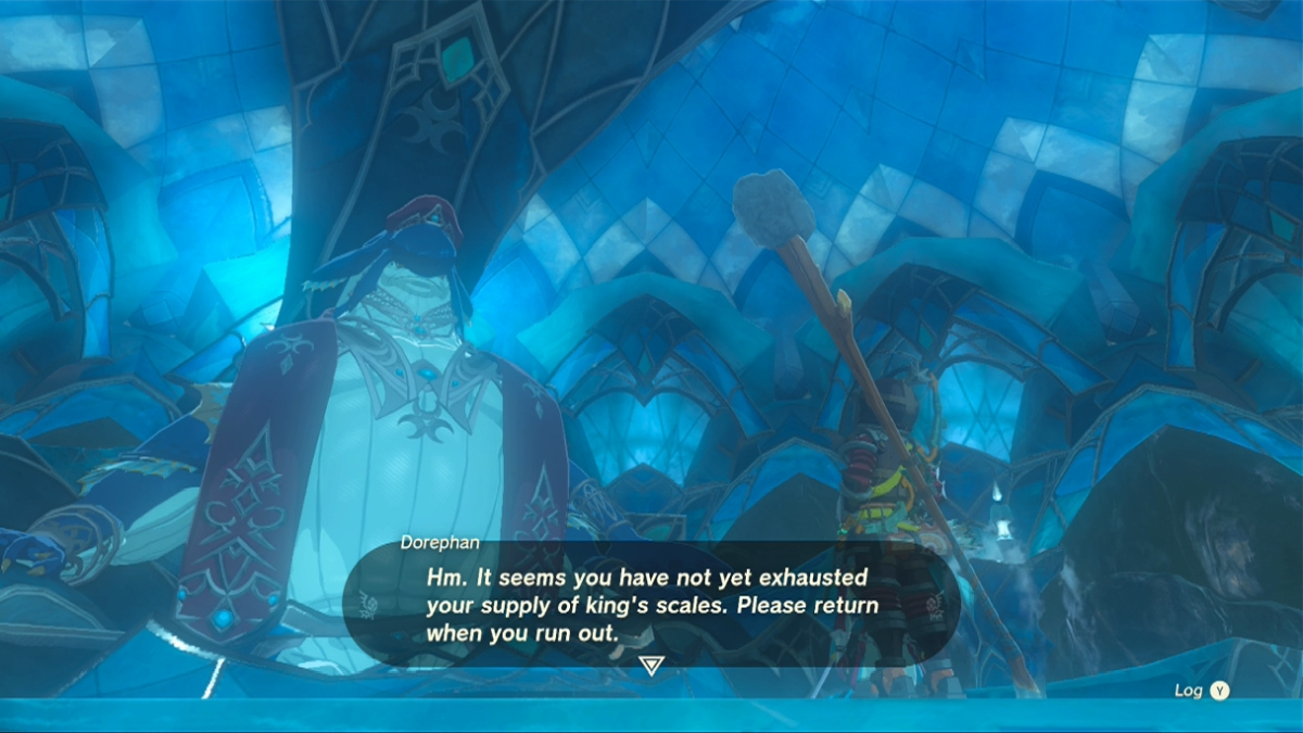คุณสามารถติด King’s Scale กับอาวุธเพื่อเพิ่มพลังโจมตีแบบฟิวส์ขาดห้าชุด นั่นไม่ได้สร้างความแตกต่างมากนักเมื่อเทียบกับความเป็นไปได้บางอย่าง แต่ก็ดีกว่าการจิ้มตา หลังจากที่คุณเคลียร์ Water Temple แล้ว King Dorephan จะย้ายกลับไปที่ห้องบัลลังก์ใน Zora’s Domain คุณสามารถพบเขาได้ที่นั่นหากต้องการรับ King’s Scales เพิ่มเติม เขาเติมเสบียงของคุณเมื่อคุณหมด และเป็นแหล่งเดียวสำหรับ King’s Scale ที่ฉันพบจนถึงตอนนี้