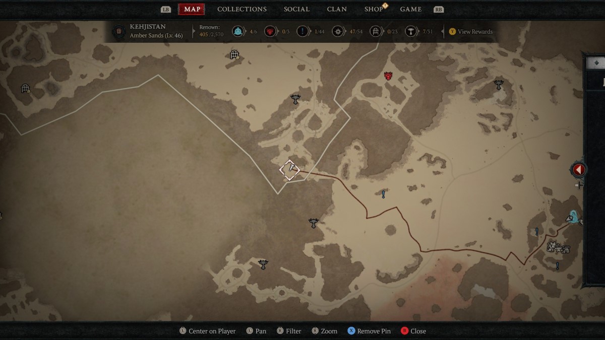 The Grotesque Loop สามารถรับได้โดยการเอาชนะ Faraya Tehi หนึ่งใน Diablo ศัตรูที่ไม่เหมือนใคร 4 ตัวที่เข้าใจยาก เช่นเดียวกับ Nine-Eyes, The Broodmother และ Sir Lynna Faraya Tehi สามารถพบได้ในสถานที่เฉพาะแห่งเดียวเท่านั้นในเวลาที่กำหนด ในกรณีนี้ สถานที่อยู่ในพื้นที่ทรายสีเหลืองอำพันของเคห์จิสถาน ทางตะวันตกเฉียงใต้ของฐานที่มั่น Alcarnus และเป็นเวลากลางวัน เพื่อไปยังตำแหน่งของ Tehi คุณจะต้องวาร์ปไปยังจุด Tarsarak Waypoint จากนั้นมุ่งหน้าไปทางตะวันตกข้าม Scorching Sands เพื่อไปถึงเขา แผนที่ด้านบนจะแสดงเส้นทาง